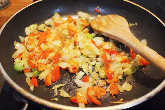 Finally sitting down to dinner. Mum was held up at work so I'm starving right now. I made cauliflower rice with onions, garlic, peppers, chili, black beans and some quorn pieces. I may have added too much garlic, but at least it will be good for our immune systems!